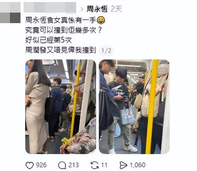 近日有网民在港铁车厢中,目击周永恒与一名妙龄少女举止亲密,期间周永恒更是脱下口罩,毫不怕被周围人认出。该行为被曝光后,瞬间引发诸多网民热议。