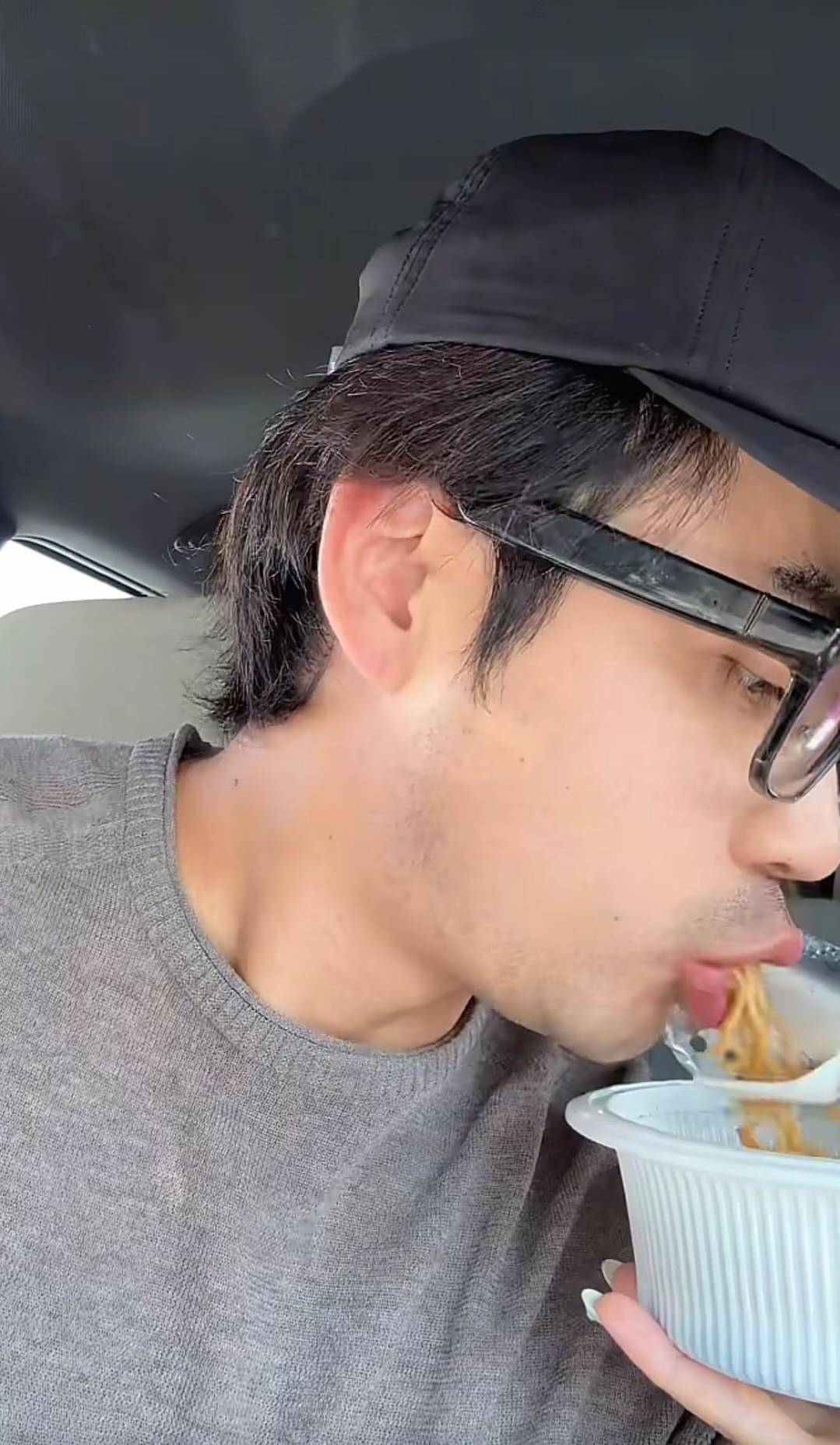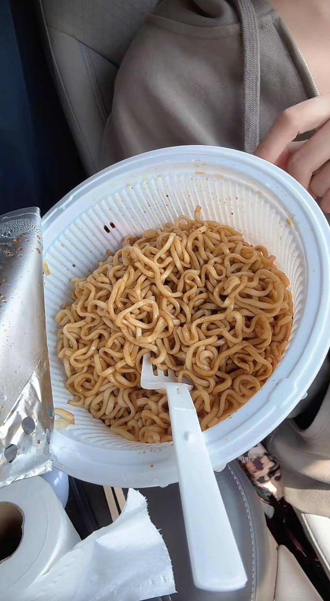 接着,他继续往目的地开车,晚饭吃的也是泡面。弦子还在车上拍了照留念,看表情感觉她的心情放松了一些。