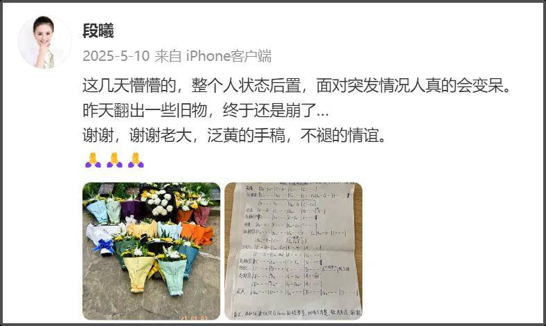 2019年的时候,段曦发文,似乎仍受到谣言影响,这几年她的社媒几乎处于停更状态。只在2025年晒出过当年张杰《北斗星的爱》的手稿,似乎是在纪念已经去世的作曲人苟伟。