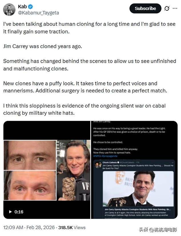 近日,64岁的好莱坞喜剧天王金·凯瑞亮相巴黎第51届凯撒奖颁奖典礼,领取荣誉凯撒奖。然而,这位久未露面的巨星却因为容貌大变,意外在社交媒体上引发了一场沸沸扬扬的克隆人风波。