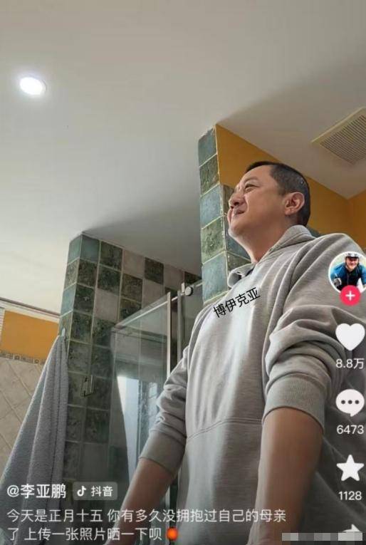 元宵节这天李亚鹏出现在镜头里的时候,脸上还有点油,头发也没怎么整理,就那么站在卫生间洗脸,跟大家讲他为什么头天夜里赶回了北京