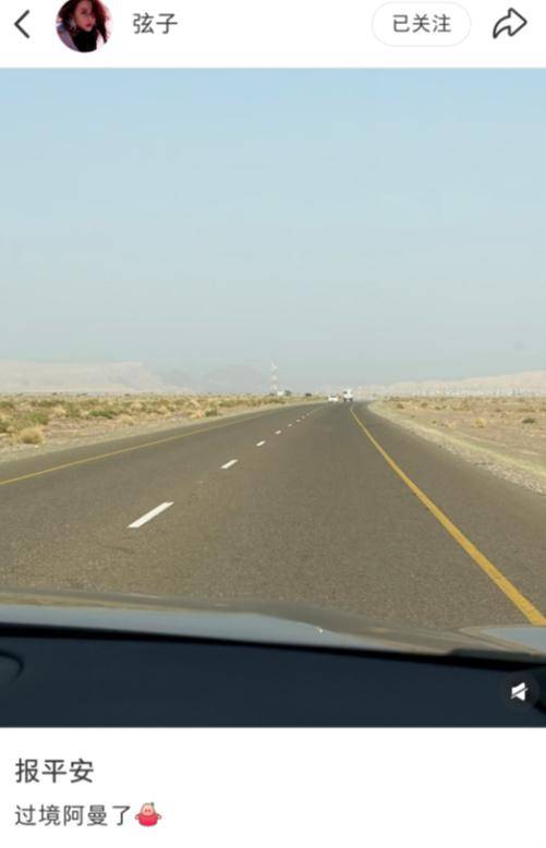 到了阿曼边境,李茂说气氛很严肃,但并没有乱,没有拥堵,没有人推挤,过关比想象中顺利,继续往马斯喀特开的那段路,弦子在车上拍了张照,表情比出发时松了一些
