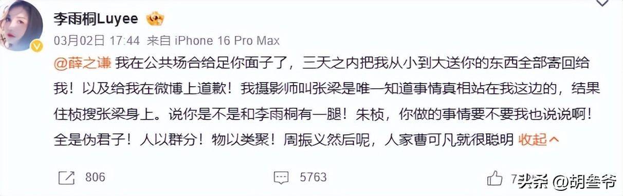 而另一边,李雨桐和薛之谦的风波还在继续。