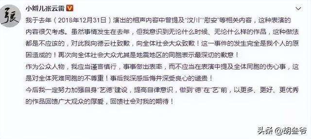 中国曲艺家协会都出面发布声明,强调曲艺作品要正面引导,张云雷这才公开道歉,暂停演出。