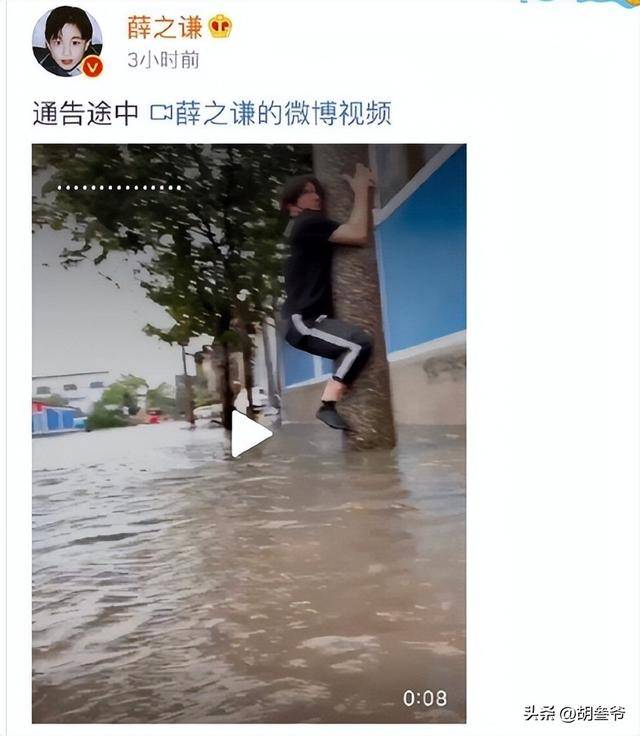 当时薛之谦因爬电线杆避洪的照片被网友批作秀,调侃天灾的行为同样引发了全网不满。