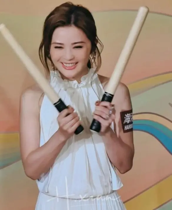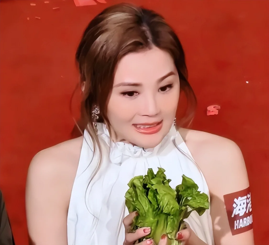 当她站在醒狮旁边合影的样子看着状态一般,脸肿下巴凸还透着点胶感,一点没有往日港女的精致。