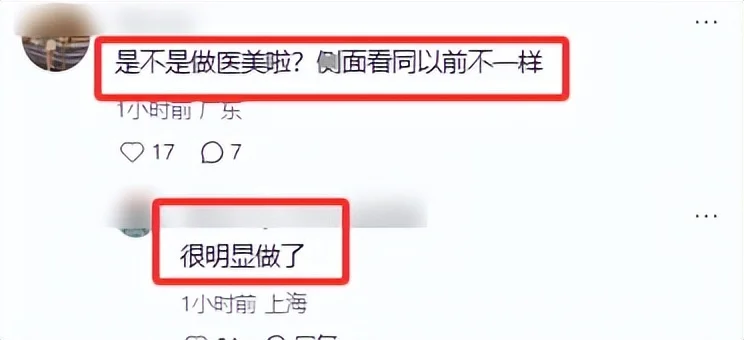 而且下唇的位置也看着怪怪的,不少人都觉得她脸上的胶感很重,甚至有人猜测是不是刚做完美医还在恢复期。