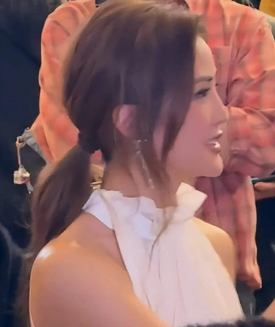 咱们先看阿Sa当天的状态,照片里的她脸颊肿肿的,没有了以前紧致的轮廓,侧面看的时候下巴部位特别突出,线条显得很不自然。