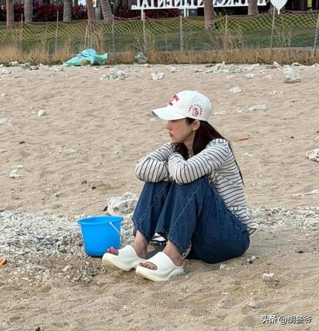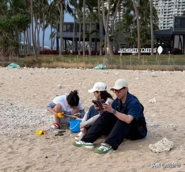 到了沙滩上陪孩子抓螃蟹、踩浪花时,他弯腰的瞬间,双下巴直接显现出来,侧脸线条变得圆润,整个人比之前肥硕了不少,和荧幕上的形象判若两人。