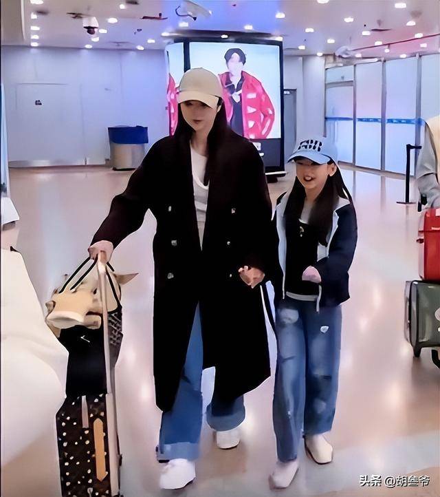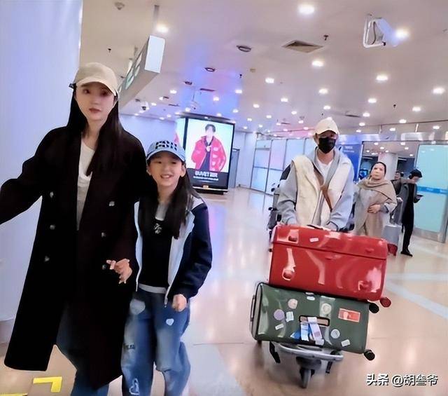 2月23日大年初七,一家三口结束度假返京,机场里的画面更是真实到让人觉得亲切。