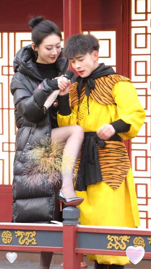 之后又凑到孙悟空身边,贴身站着一起唱歌,身体时不时靠向对方,显得有些拘谨又刻意,和她平时自然的互动风格完全不同。