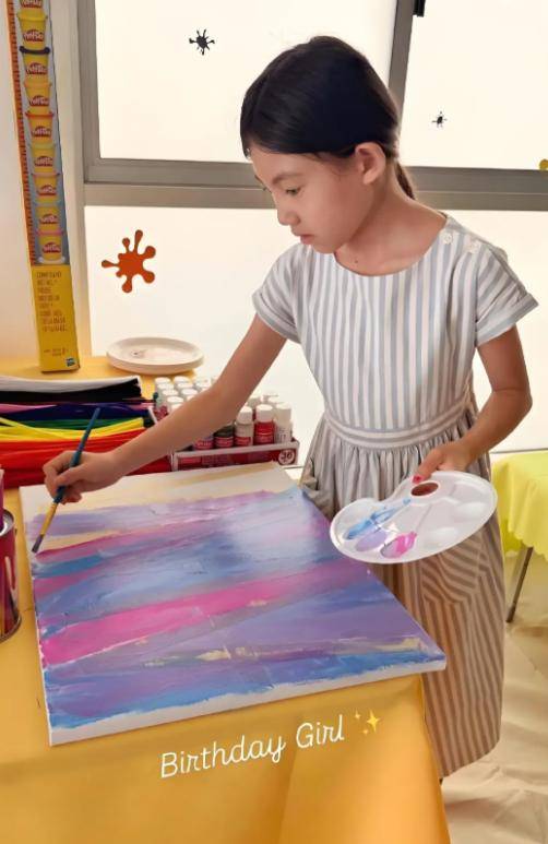 因为从小就喜欢画画,三岁的涂鸦稚嫩可爱,八岁时的作品已经有了细腻的颜色过渡,陈冠希还特意为女儿办过小型画展,把她的画作挂满了房间。