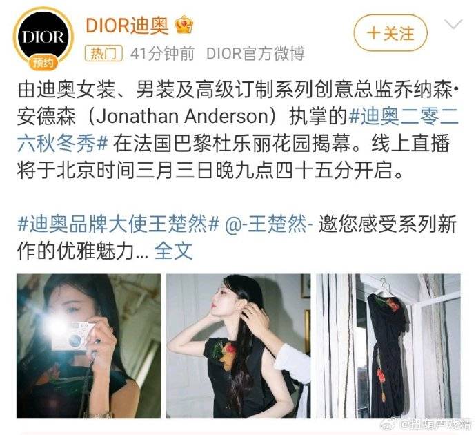 2026年3月3日,迪奥通过官方微博正式宣布演员王楚然成为品牌大使,这一毫无预兆的“空降式”任命,恰逢巴黎时装周迪奥秋冬大秀揭幕,引发全网热议!北京时间3月3日21:45,迪