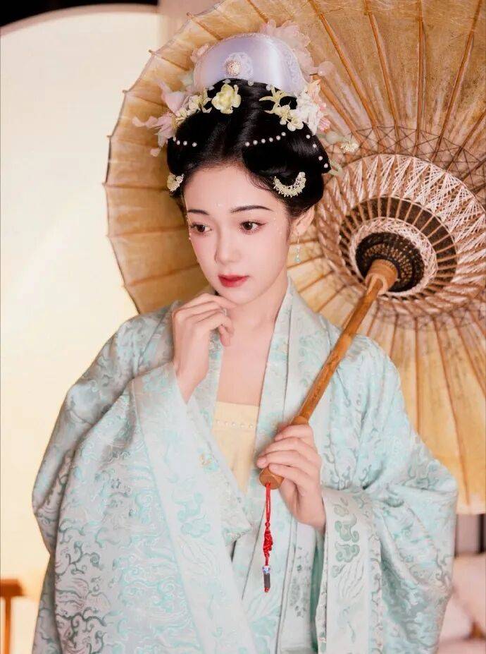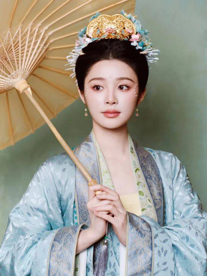 希林娜依·高穿着青色衣裳,打着竹伞的样子,绝对美爆了!