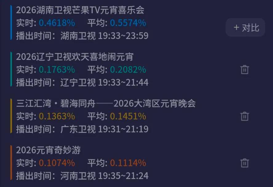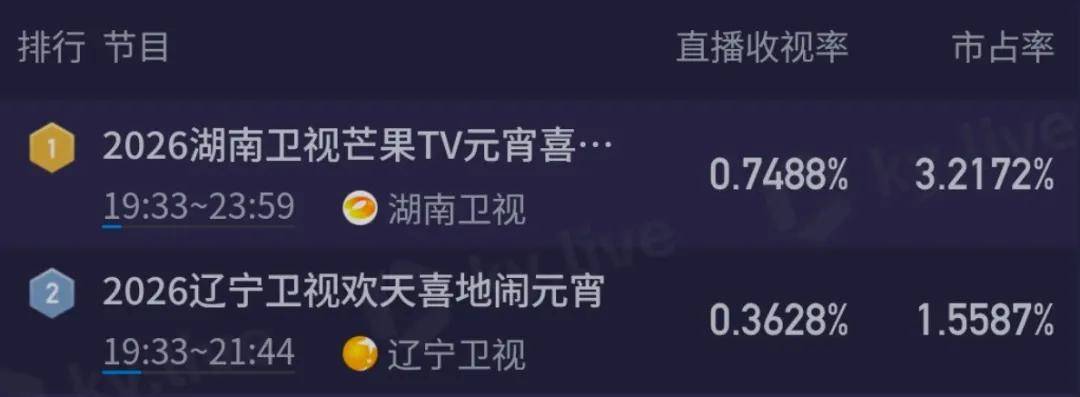 对比湖南卫视其他晚会基本上破1%的收视,元宵晚会收视没破1%,足够说明问题了,收视底盘都是一点点流失的。