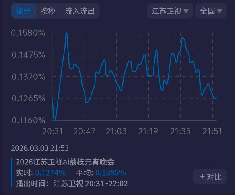 江苏卫视凭借跨年晚会真唱积攒了晚会口碑,逐渐把全年晚会都做成了演唱会形式,连元宵晚会都一样,重复的形式、重复的节目、重复的明星看了太多次,愈发留不住观众,江苏卫视元宵晚会收视直接就变成了心电图,起伏波动极大,最高点0.15%还是开播前十分钟。