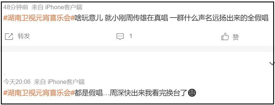 掐指一算,从跨年晚会到小年夜春晚、卫视春晚,湖南卫视的晚会接连卷入假唱争议,其中小年夜春晚甚至多次出现假唱穿帮,女星李一桐的话筒没到嘴边,声音就出来了,一次又一次毫不掩饰,真的会影响口碑呢。