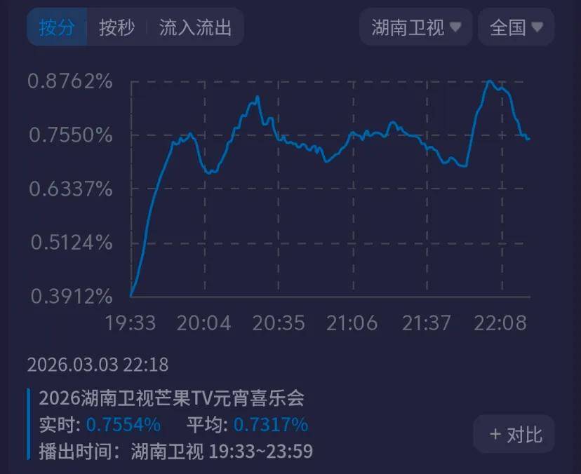 开播不到一个小时,湖南卫视元宵晚会就留不住观众了,最高点不过0.8%。