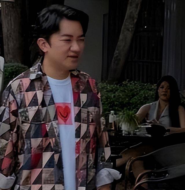 长相上也没什么修饰,头发有点凌乱,蒜头鼻特别大,脸上还有淡淡的胡茬,显得有些憔悴,和旁边精致的李亚男站在一起,反差感拉满。