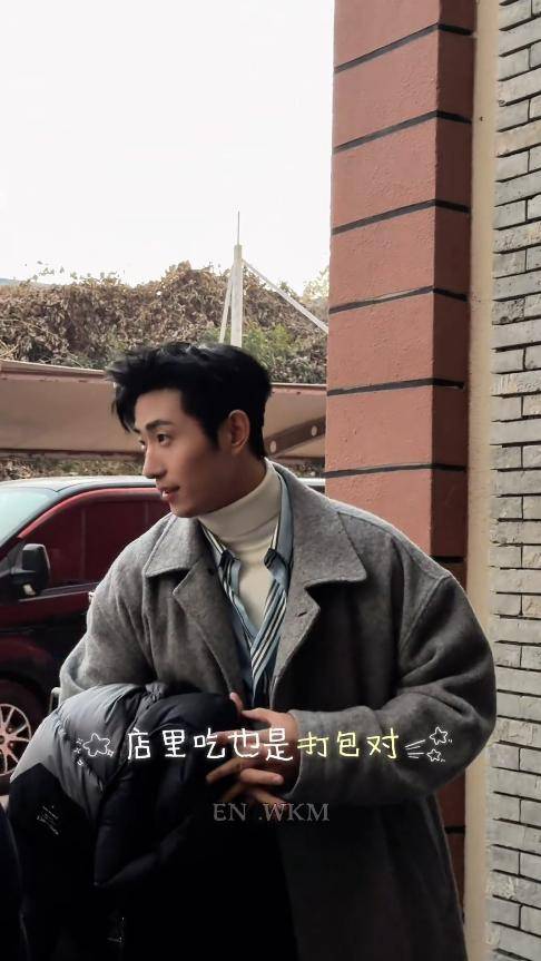 没有精致的妆容,也没有华丽的穿搭,就穿一件灰色大衣和牛仔裤,头发随意打理,手里拿着外套,看着就像个普通的邻家哥哥。