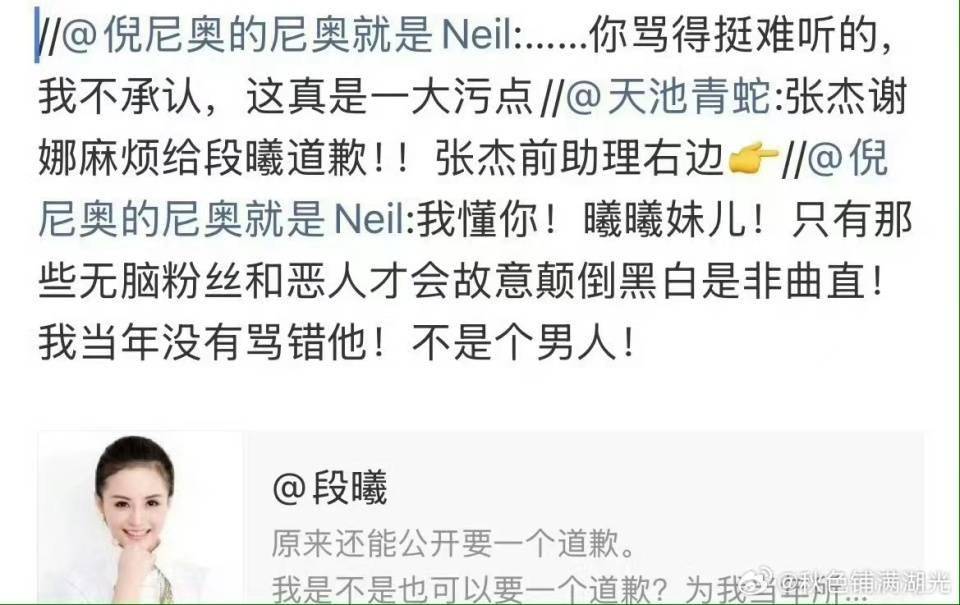 张杰的前助理也出来倒油,安慰段曦,认为那些无脑粉丝和恶人才会故意颠倒黑白是非曲直,当年没有骂错他,不是个男人。