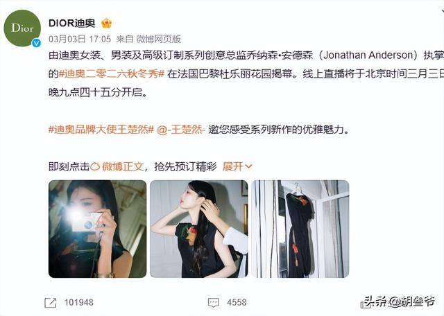 王楚然这波零考察期空降,直接让#王楚然Dior品牌大使#话题直接冲上热搜榜,能看出品牌方确实很重视王楚然。