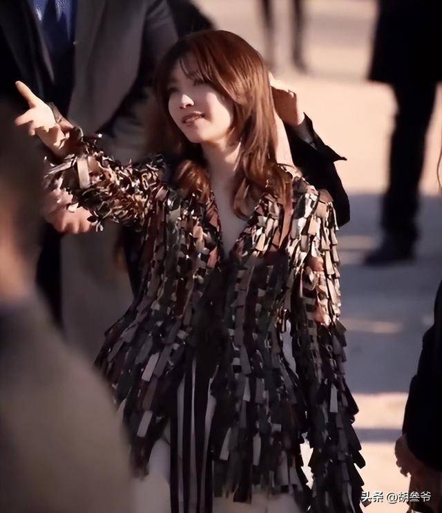 她此次选择的迷彩流苏设计上衣格外亮眼,独特的迷彩纹理带着流动的视觉美感。