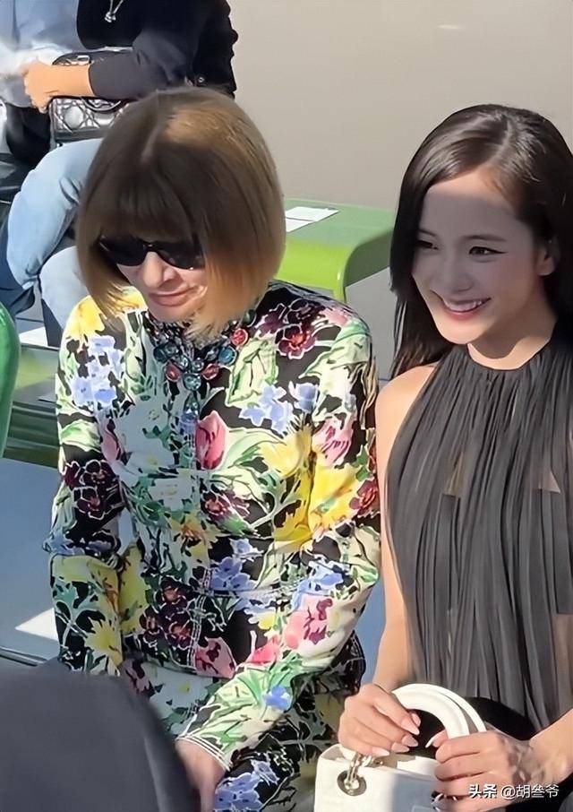 秀场座位就坐在Dior CEO和LVMH集团大公子中间,旁边还是VOGUE总编Anna Wintour,这位置一看就是品牌的“亲闺女”待遇。