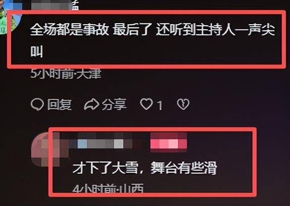 其实这场晚会的翻车,并不是偶然。后来才知道,长治在晚会开始前突降暴雪,舞台被厚雪覆盖。