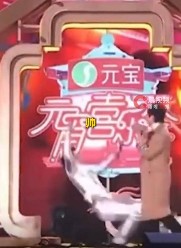 当时舞台地面有层肉眼看不见的薄冰,他摔了之后还顺着惯性向前滑了好几米,直直冲向站在C位的何炅。