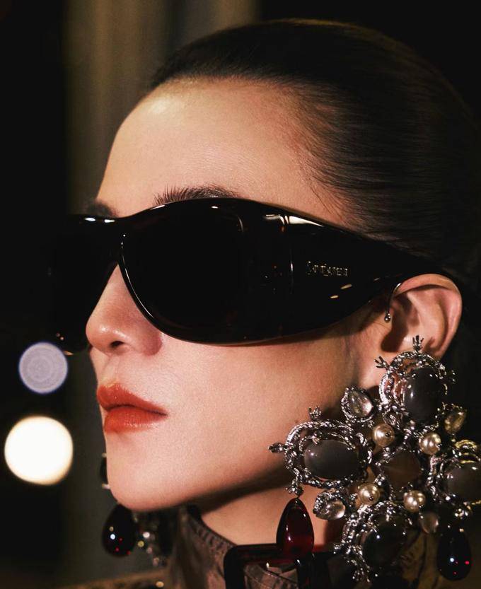 这款墨镜具有实用性,能从多个视角突显脸部的小巧。此外,它具有很强的防风功能,户外使用也是可行的。