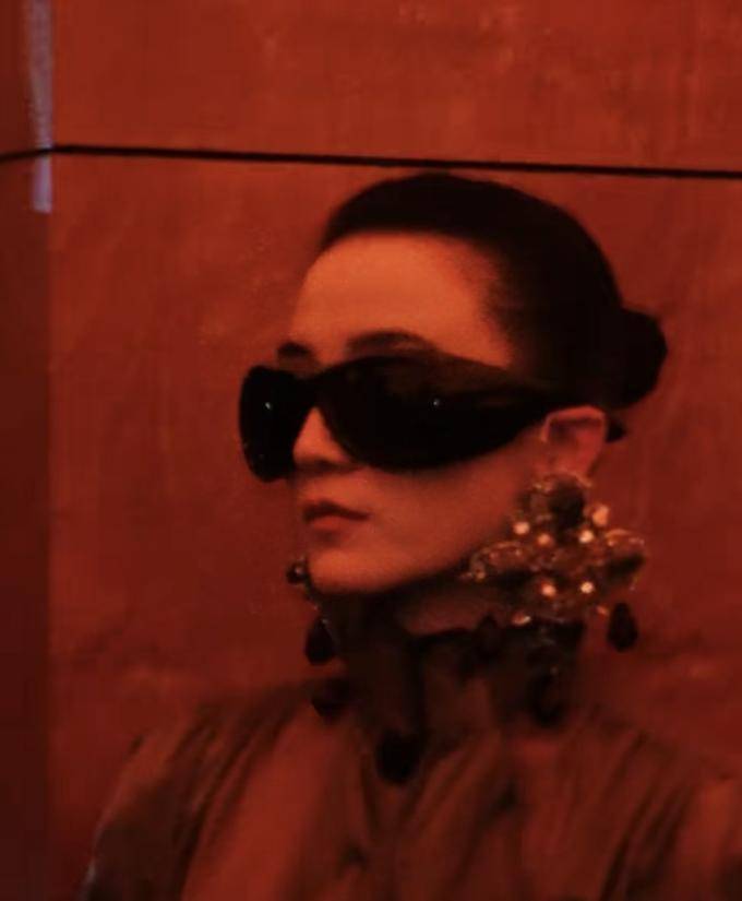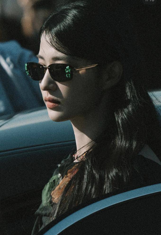 我真的很喜欢她那副黑色的墨镜,其两侧镶嵌了几颗翠绿色的宝石,这使得墨镜显得更少了现代风格,显得更为古老。
