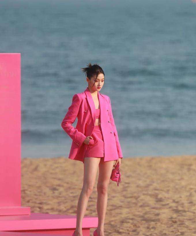 穿上土气的玫红色在关晓彤身上,却 散发出一种高冷 而有气 势的氛围。