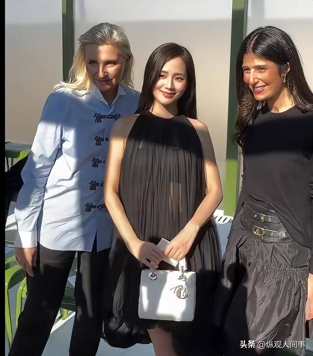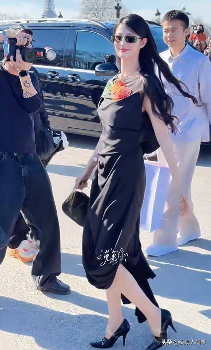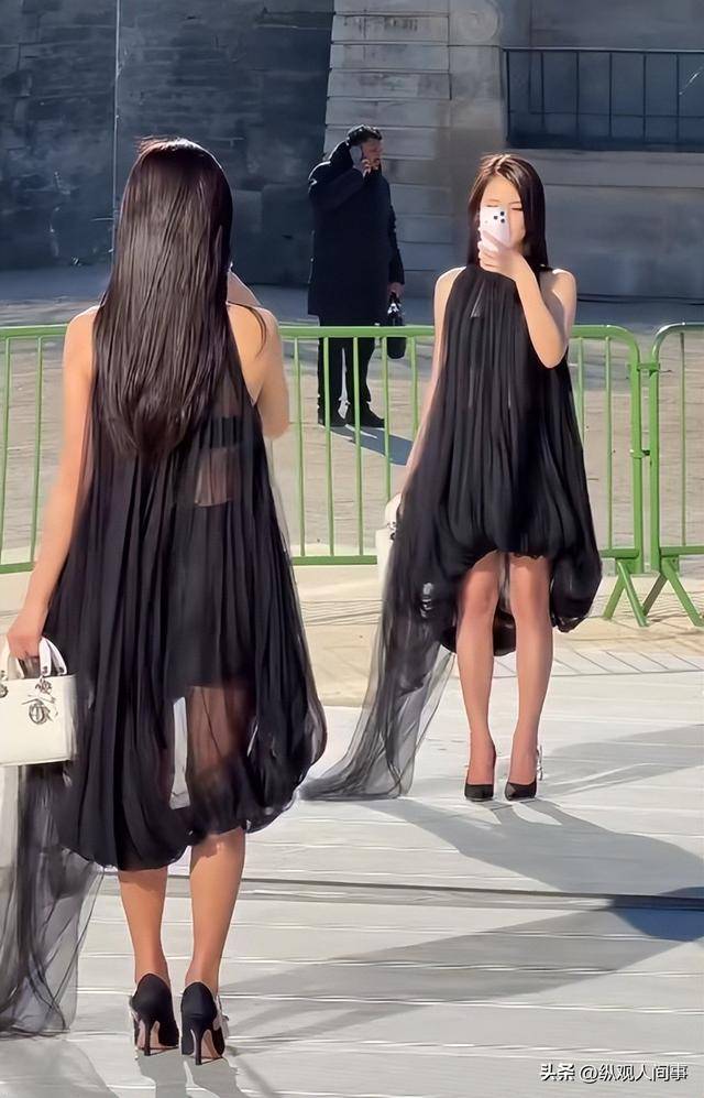 她身着迪奥新款黑纱套装,整体造型偏休闲风,与秀场的高定氛围略显违和,不仅没有凸显她的身材优势,反而让她的身形显得有些臃肿。