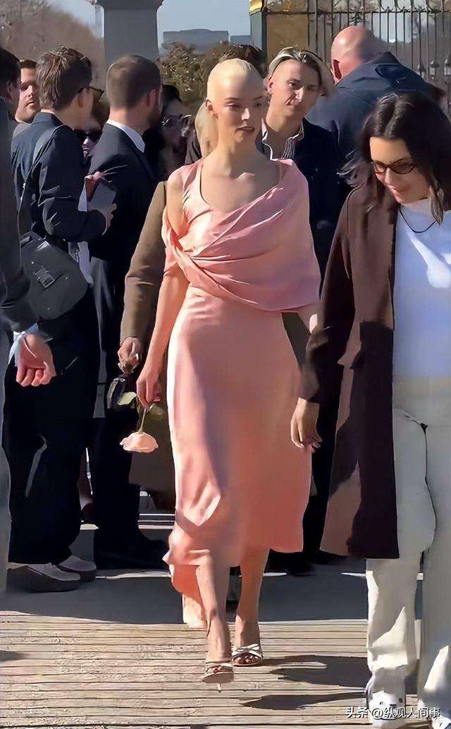她手持一支娇艳红玫瑰,与粉色裙装形成冷暖撞色。抬手、转身、浅笑的每一帧都宛如油画中的公主,外媒镜头全程聚焦。