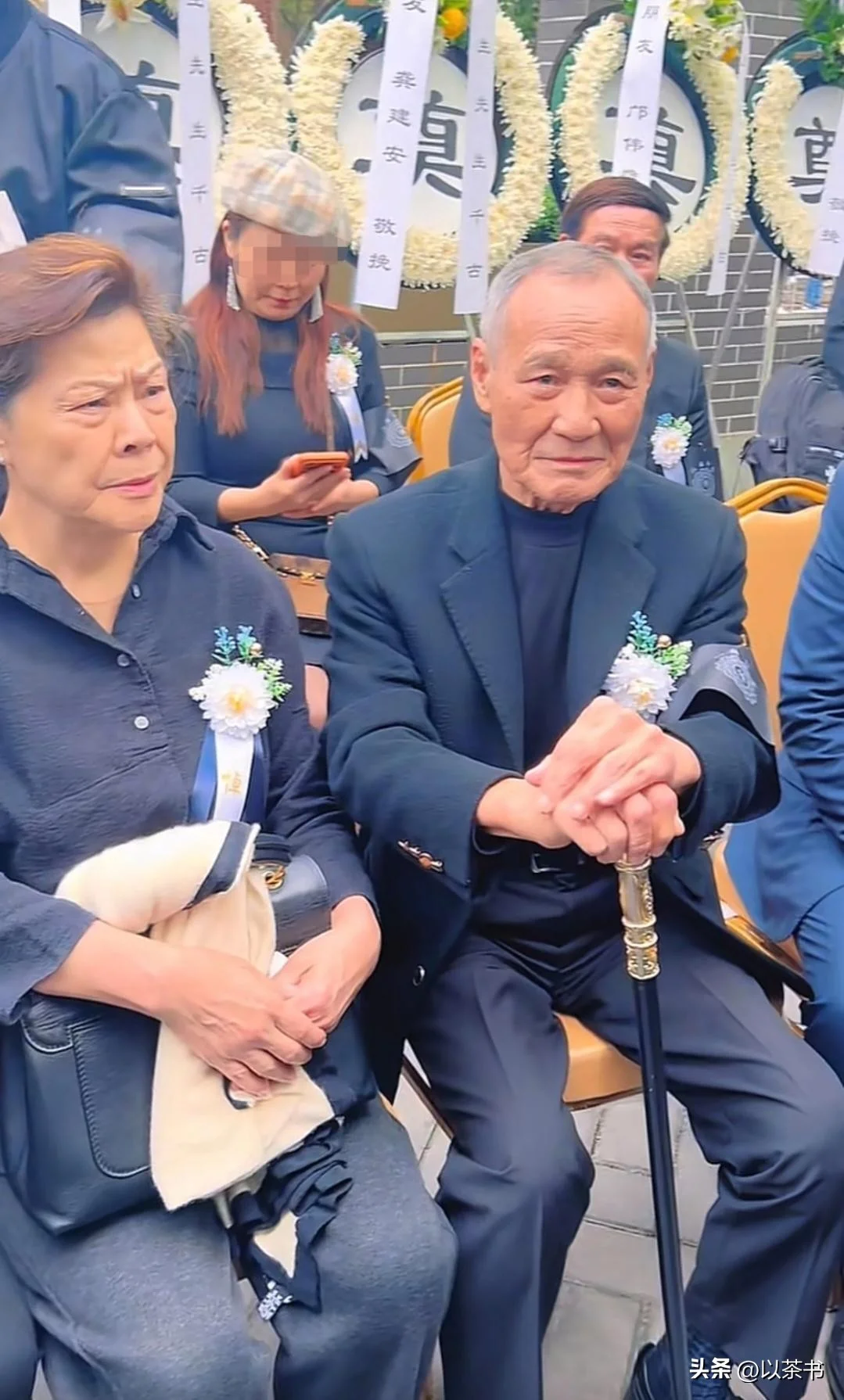 在追悼会的休息区,他落座时显得有些吃力,一旁的妻子吴国英紧紧搀着他的胳膊,眼神里全是那种老夫老妻才有的、带着点埋怨的疼惜。