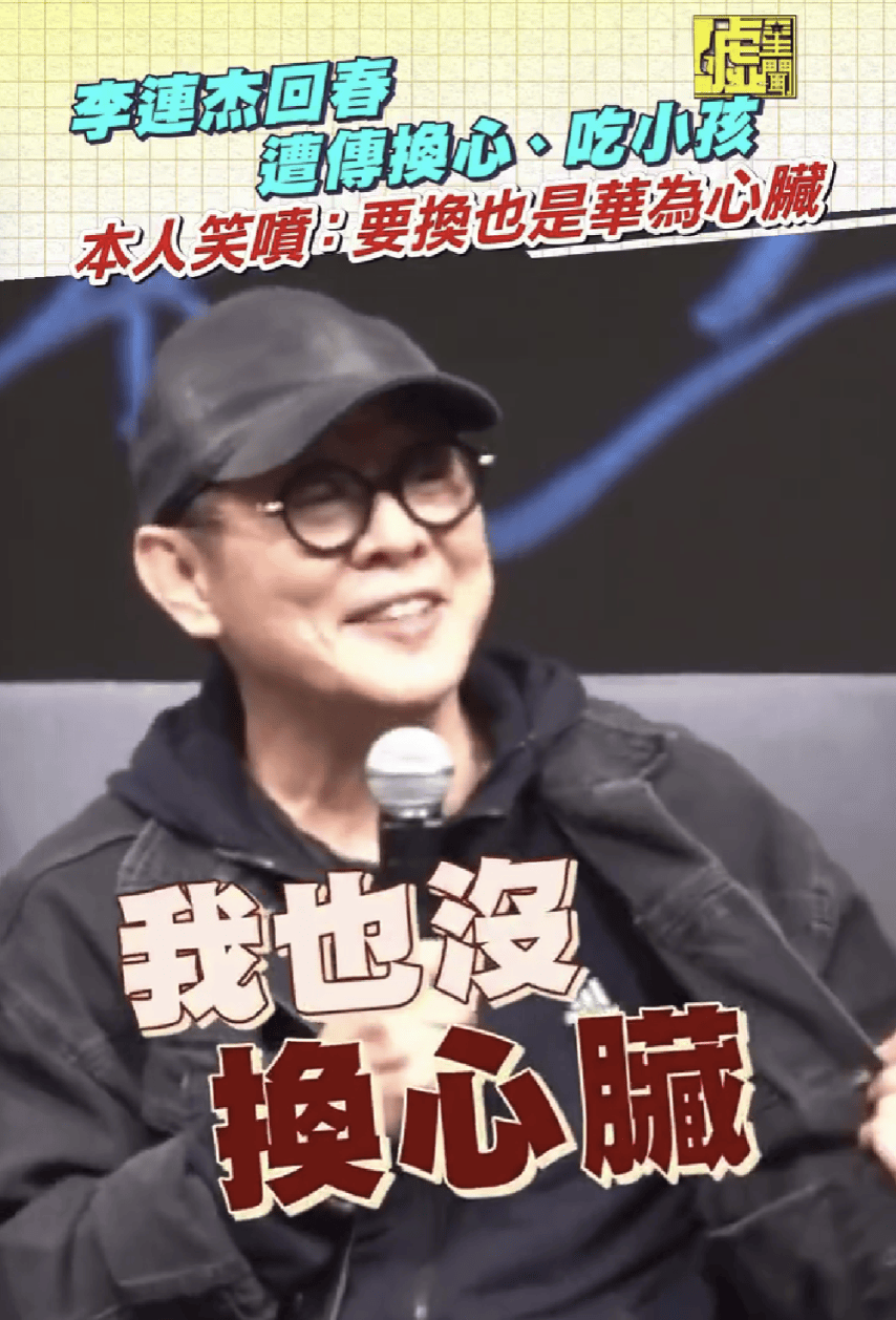 无奈之下,李连杰在中国台湾的公益讲座中,再次为自己辟谣。他毫不避讳罗列围绕自己的那些又可气又可笑的谣言,换心脏、换年轻人的血,甚至谣言越传越离谱,甚至到了吃小孩、养小鬼……李连杰无奈表态“怎么不换华为心、小米肝、特斯拉肾?”