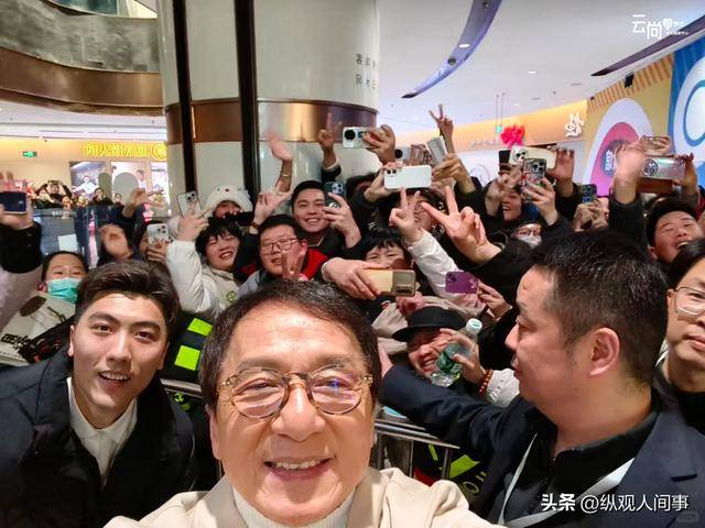 年前成龙扫楼宣传新电影时,一进门看到人群汹涌,当即熟练的拿过一位幸运女生的手机,然后交给工作人员,让对方360°无死角的拍了好几张合照。