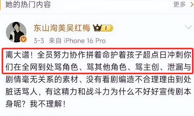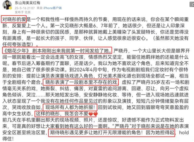 然而讽刺的是,就在剧集开播前的宣传期,吴红梅还多次公开夸赞关晓彤,说剧本刚写出来,第一时间就发给了关晓彤,还说她定妆的时候,一段即兴表演就让现场所有人都折服了。