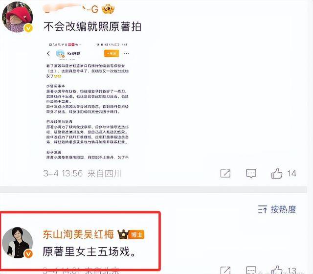 最开始制片人吴红梅还回应说,这部剧是群像剧,原著里女主本来就只有五场戏,剧版已经给加了不少戏份。