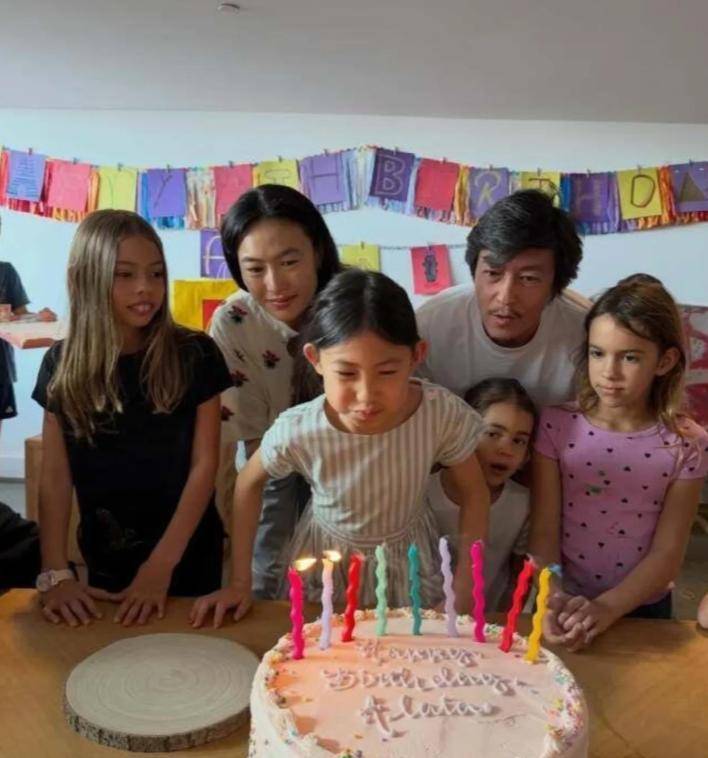 现场流出的视频里,他穿着印着女儿名字的白T恤,头发随意地散着,全程都贴心陪在女儿身边,帮着给蛋糕插蜡烛,蹲下来和女儿轻声说话,眼神里全是藏不住的温柔。