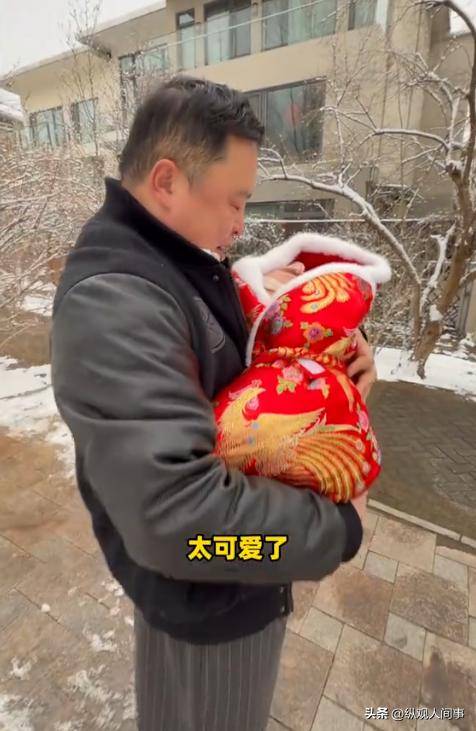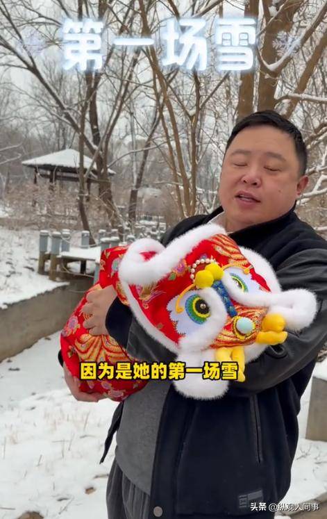 站在飘雪的院子里,阎鹤祥对着怀里的女儿轻声呢喃,嘴里念叨着 “下雪了,闺女,看不看看看雪?”,语气里的宠溺都要溢出屏幕。