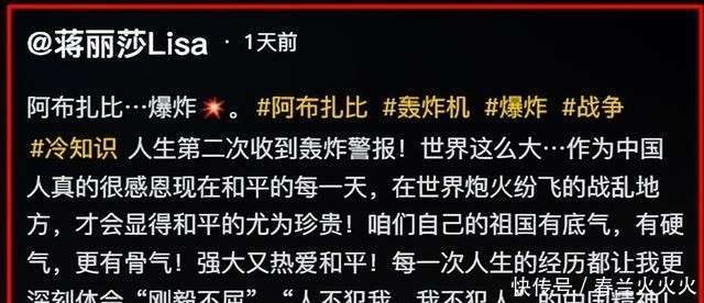 与李茂一家不顺的境遇相比,陈浩民和蒋丽莎夫妇的情况稍显不同。3月1日,蒋丽莎在社交平台上晒出了一条令人不寒而栗的轰炸警报,并且直言这是她人生中的第二次收到这种警告。她感慨道,和平的可贵和祖国的强大。与李茂的直接发声相比,陈浩民和蒋丽莎并未透露他们是如何最终回国的。