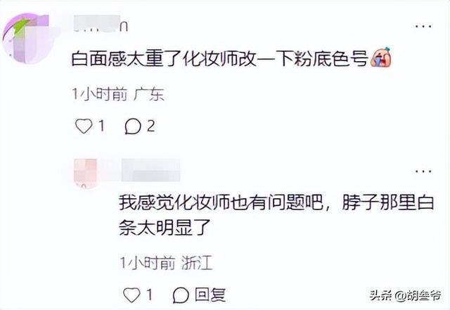 为了上镜能显得皮肤白皙均匀,化妆师难免会多上几层粉底,可没想到这次用力过猛,反倒让精致的造型打了折扣。