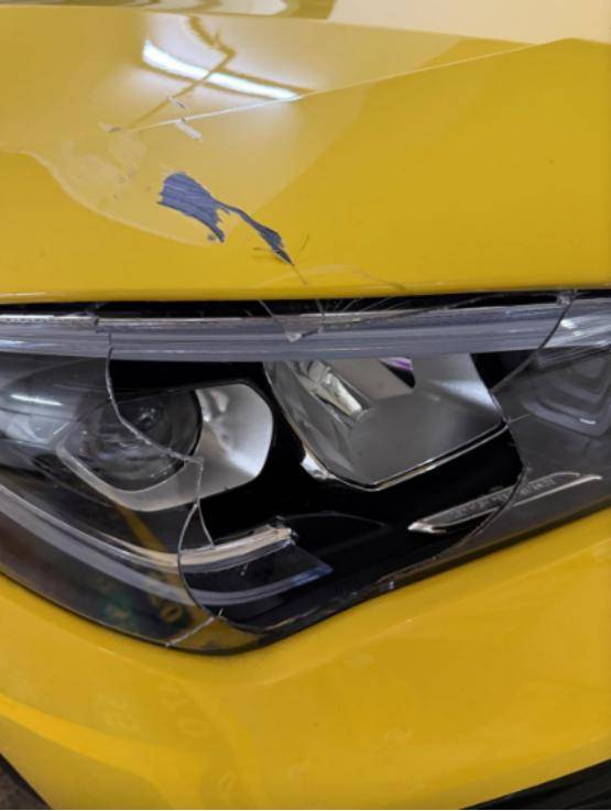 从周家怡分享的照片可见,周家怡的爱车损毁程度严重,她的爱车,车头已被刮花,车头灯罩碎裂。