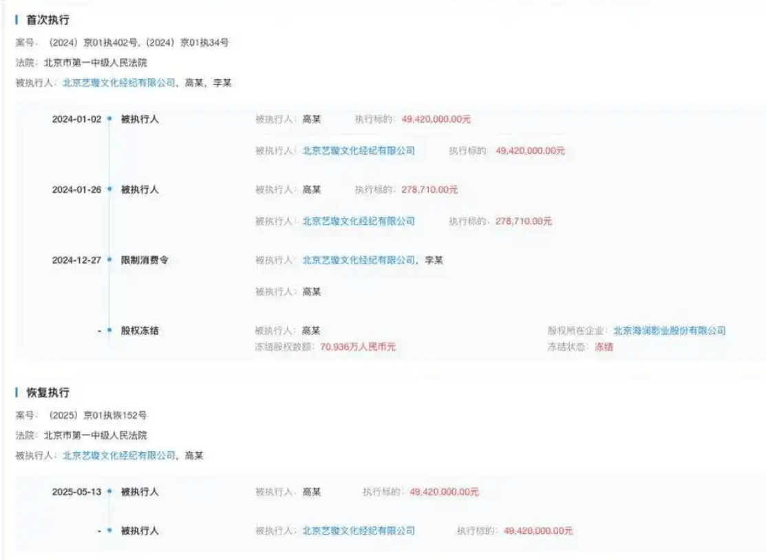 再来看这次恢复执行信息,执行标的4942万。到了执行的阶段,说明法院审判已经结束,艺璇被判赔,没能如期支付赔偿金才会执行。4942万不是小数目,都是《阿那亚恋情》这个项目的赔偿金吗?很可能不是。