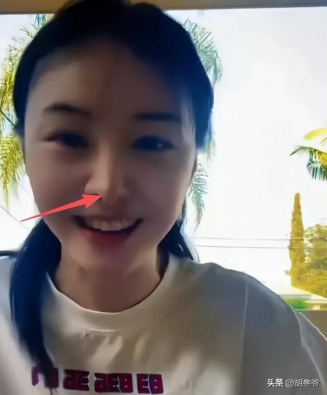 她的鼻头比以往圆润了不少,鼻大嘴歪的样子,和当年那个精致小巧的“小仙女”形象相去甚远。