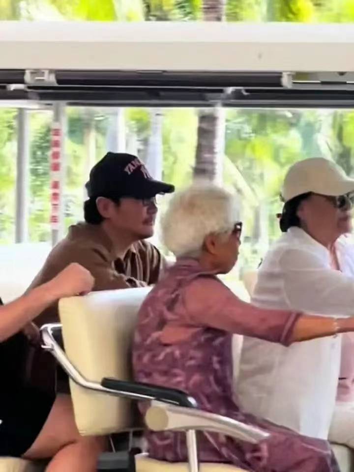 多次被拍到在蜈支洲岛等地亲自搀扶父母散步、下船、玩摩托艇,全程细心照看。