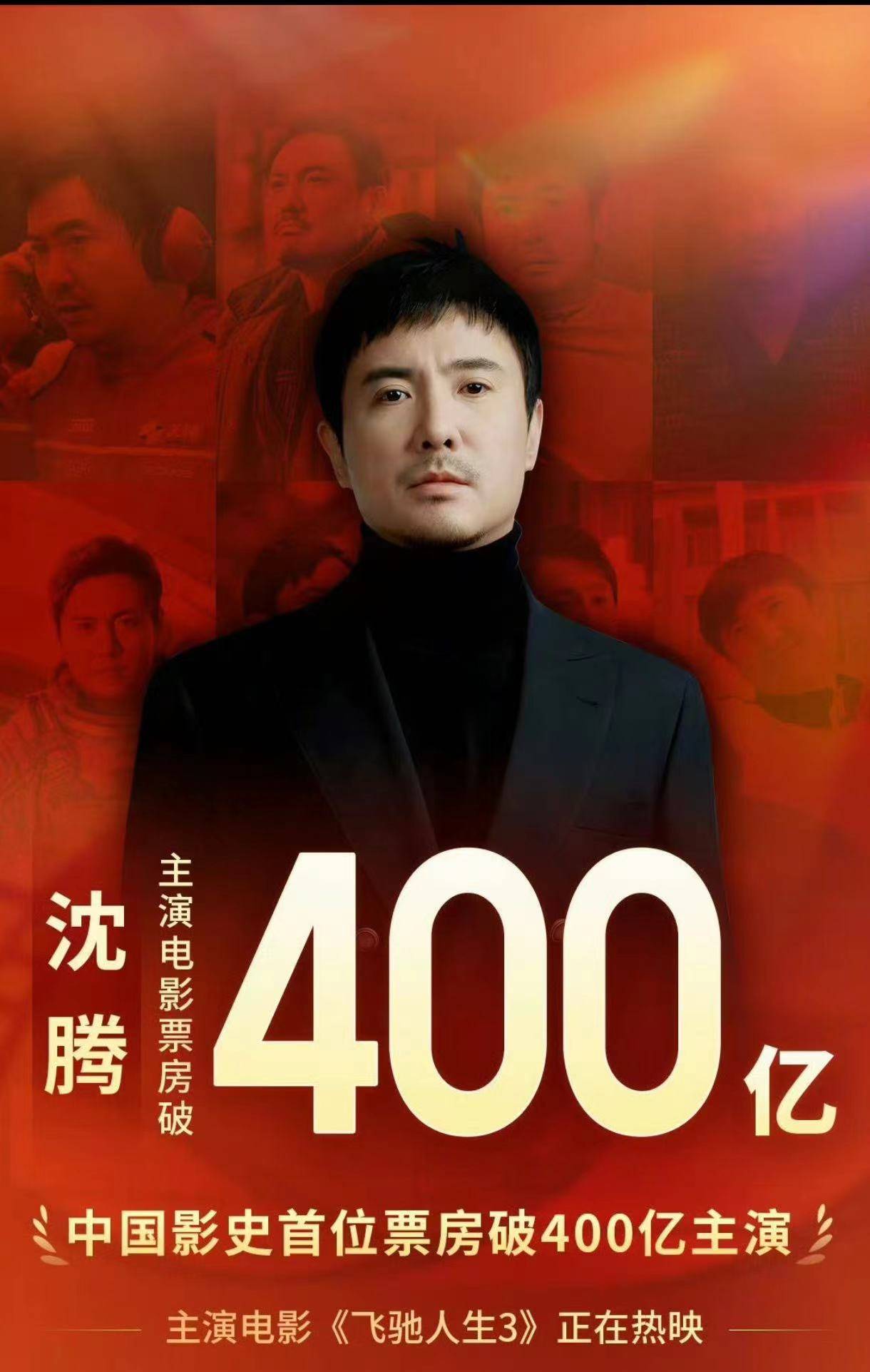截至2026年2月下旬,沈腾主演影片累计票房正式突破400亿大关,大幅领先第二名吴京50多亿,彻底坐稳“华语影坛票房第一人”位置。