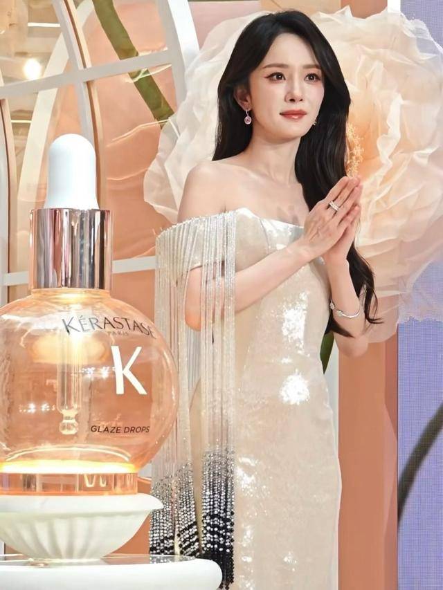 脖子前抻的体态没了往日精致,腰腹部位是最大的槽点,没有明显的腰线,亮片面料紧贴着身体,水桶腰的轮廓格外突出,完全没了女明星该有的纤细感。